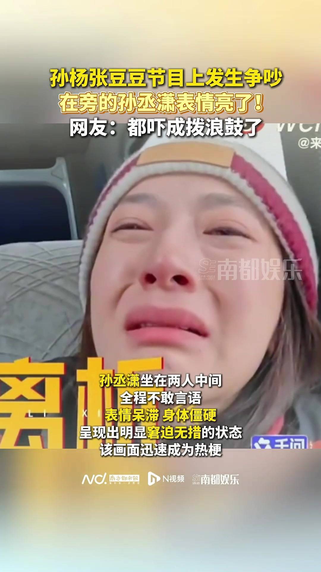 最近综艺节目里的一场争吵把网友们都看呆了——孙杨和张豆豆在镜头前吵得不可开交,张豆豆当场红了眼眶,眼泪啪嗒啪嗒往下掉,旁边的孙丞潇站也不是坐也不是,表情管理彻底失控。这事儿一上热搜,#谁来救救孙丞潇#的话题就被刷爆了,大家都在调侃这个夹在中间的“受气包”。